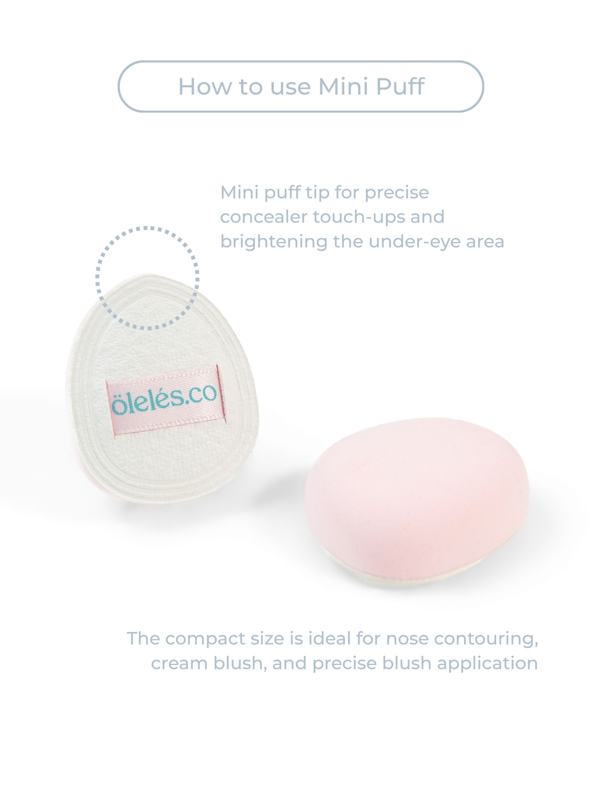 • Mini puff is perfect for concealer touch-ups, under-eye brightening, nose contour, cream blush and precise blush application.