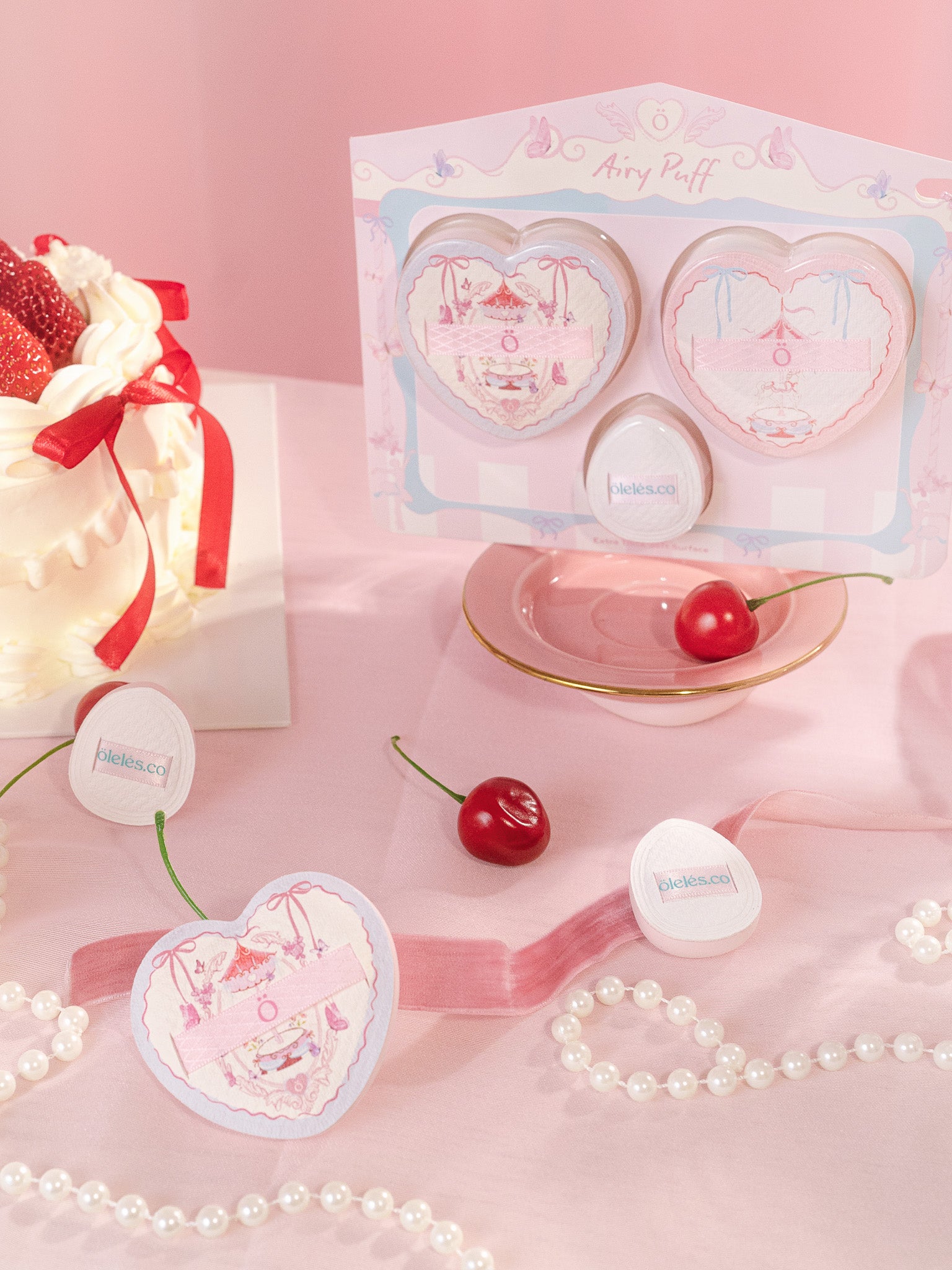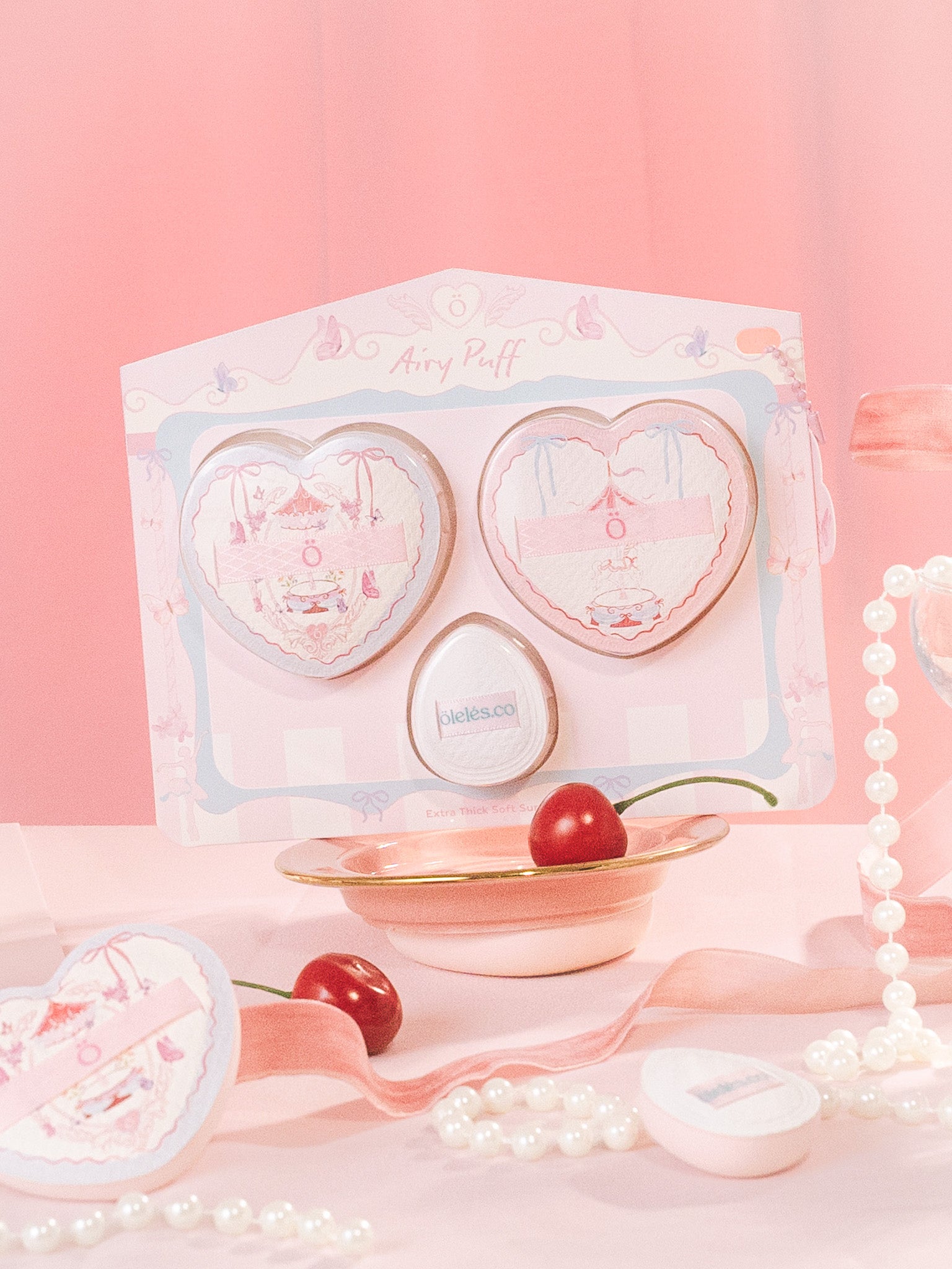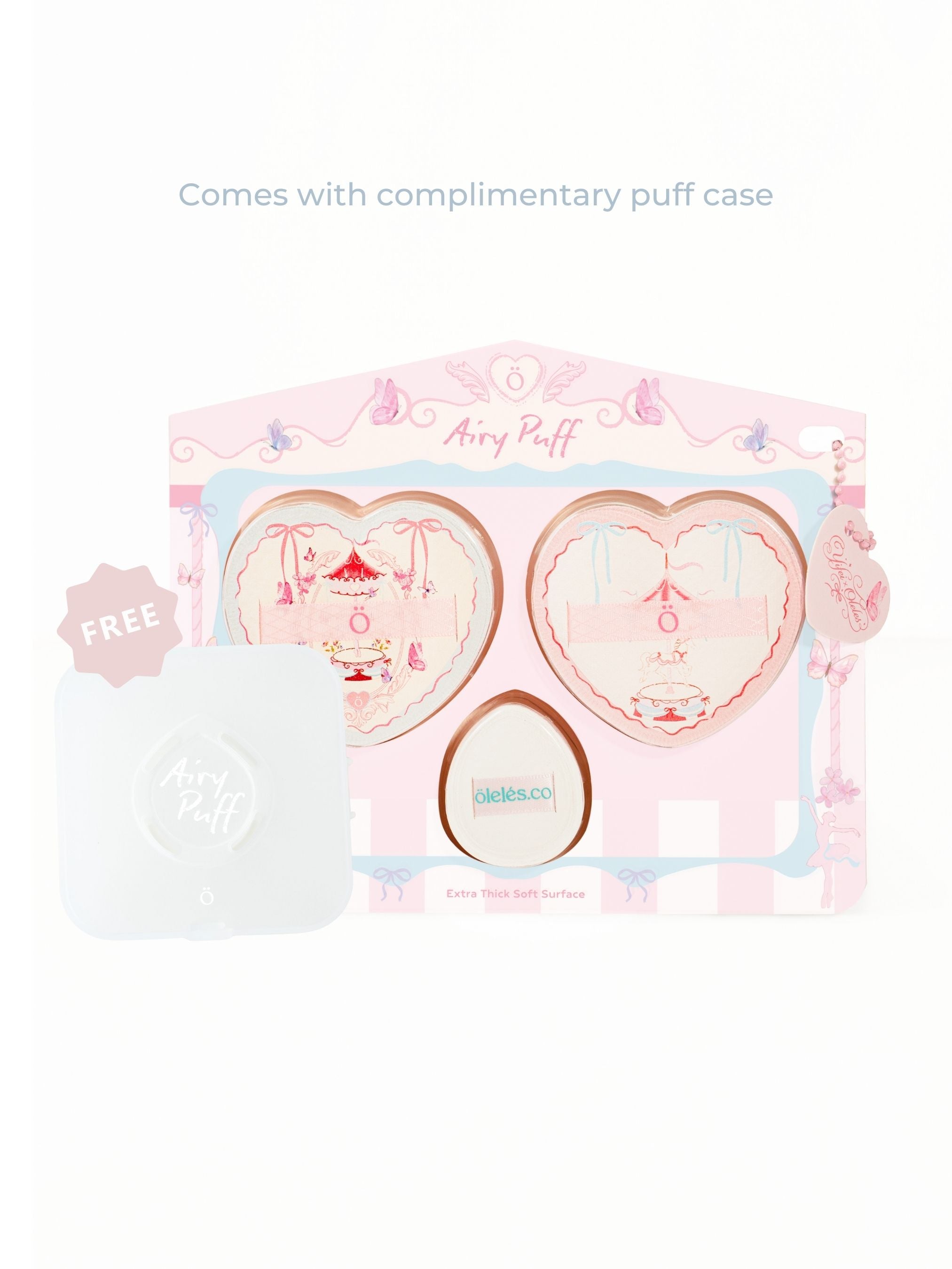 • Includes 2 heart-shaped puffs + 1 mini puff, with a complimentary puff case for an extra dose of love in every application